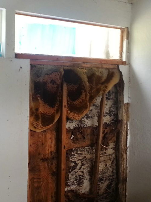 Many contractors might simply close up the wall, but doing so will cause the hive to die within your wall, leaving pounds of honeycomb and honey to melt and rot your interior structures.